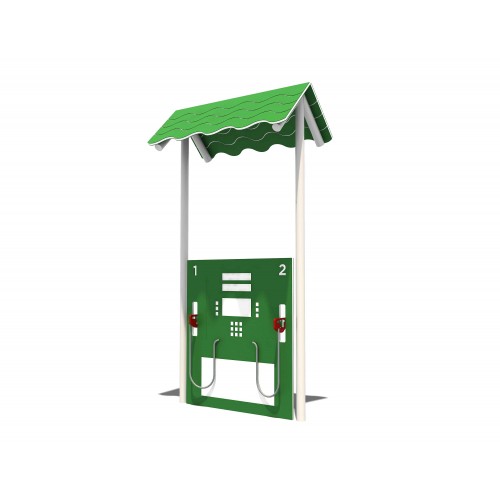 Name: Gas er Up Series: Tot Land Age Group: 2-5 # of Play Activities: Child Capacity: 2 Use Zone: 15'-10" x 14'-3" Max Fall Height: N/A Equipment or Structure Size: 3'-10" x 2'-2" x 7'-4" Structure Weight 180