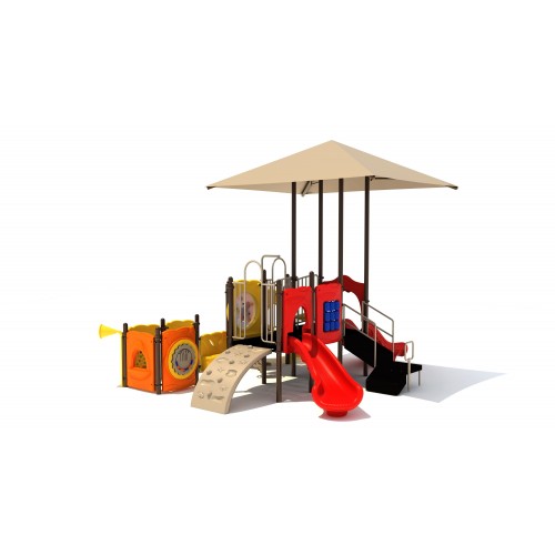 Minimo playgrounds offer you features such as a slightly smaller footprint than standard equipment. This smaller footprint accommodates smaller play spaces with more activities without sacrificing safety or durability. In addition to providing big play in smaller spaces, you will also enjoy lower equipment cost, shipping cost, and surfacing cost that one experiences with standard-sized playgrounds.